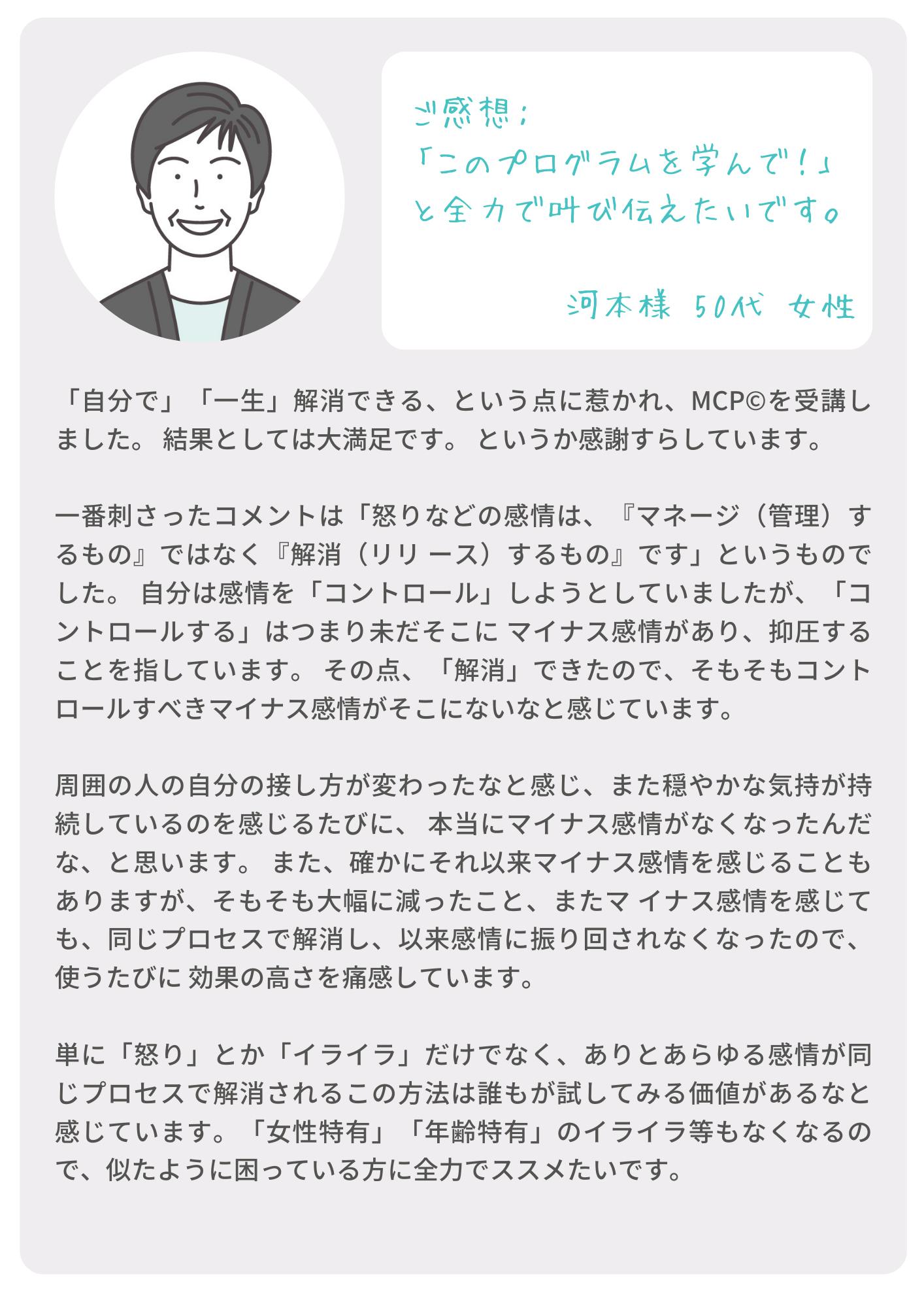 今、マイナス感情がなかったとしても、今後出てくるかもしれない。自分は大丈夫でも、家族や友人にそういう苦しみを味わう人が出てくるかもしれません。そんな時にあなたがメンタルクリアプログラムを知っていれば、その苦しみをなくしてあげることができます。