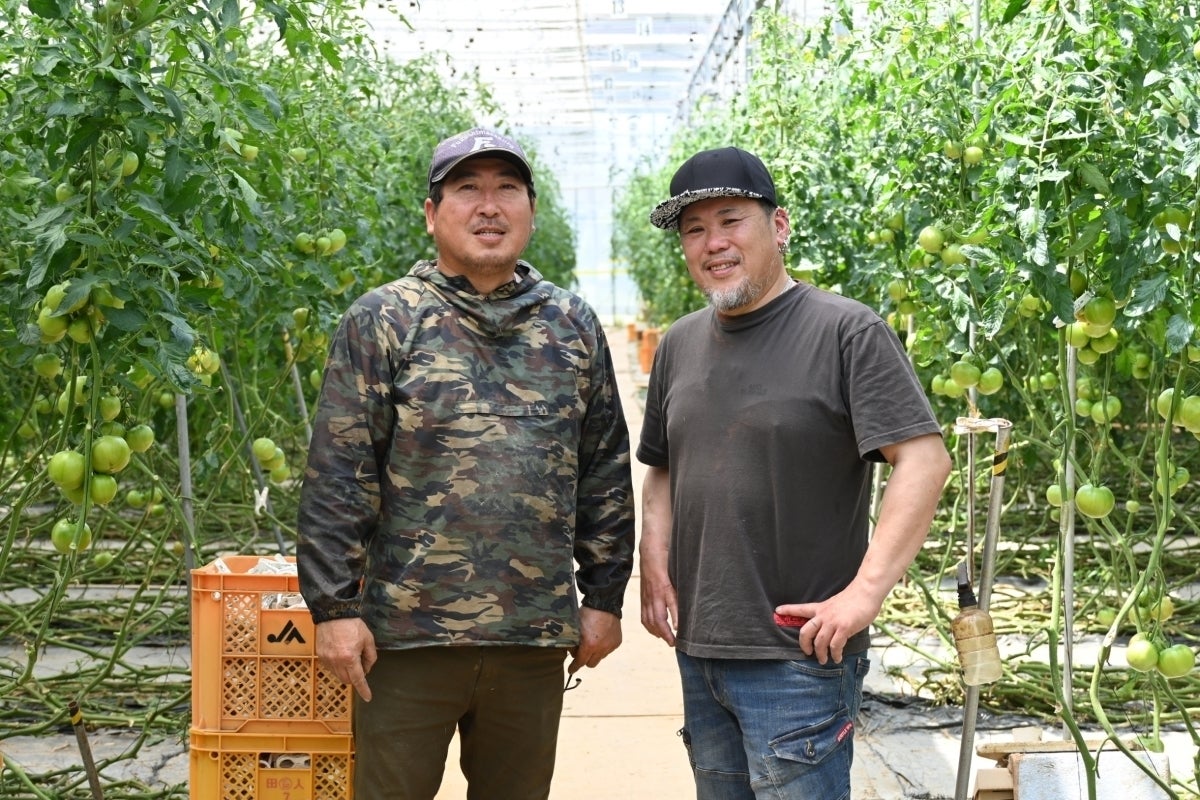 親バカトマトを栽培する 助川農園(いわき市錦町)の助川成光さん(左)