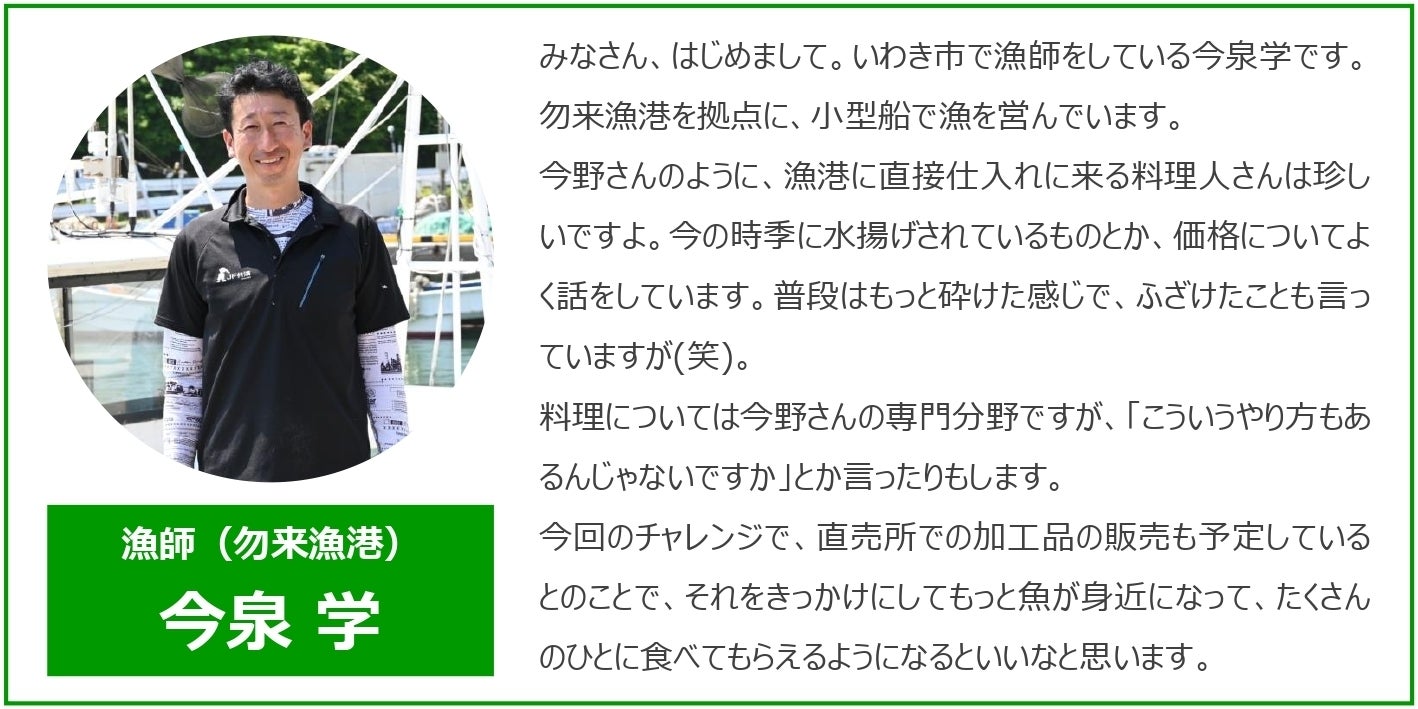 漁師の今泉学さん(右)。勿来漁港などで直接 魚の仕入れをしています。