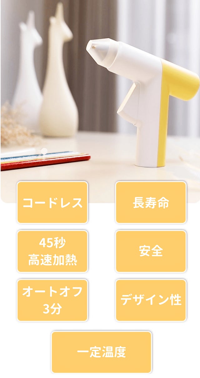 OCTSANで時間節約!このコードレスグルーガンは、従来の加熱システムよりも効率的な45秒の高速予熱が特徴。