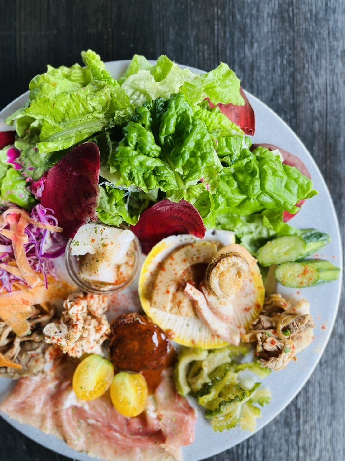前菜も毎日替えております。野菜を中心に、カラフルで身体に良い組み合わせを毎日構成しております!