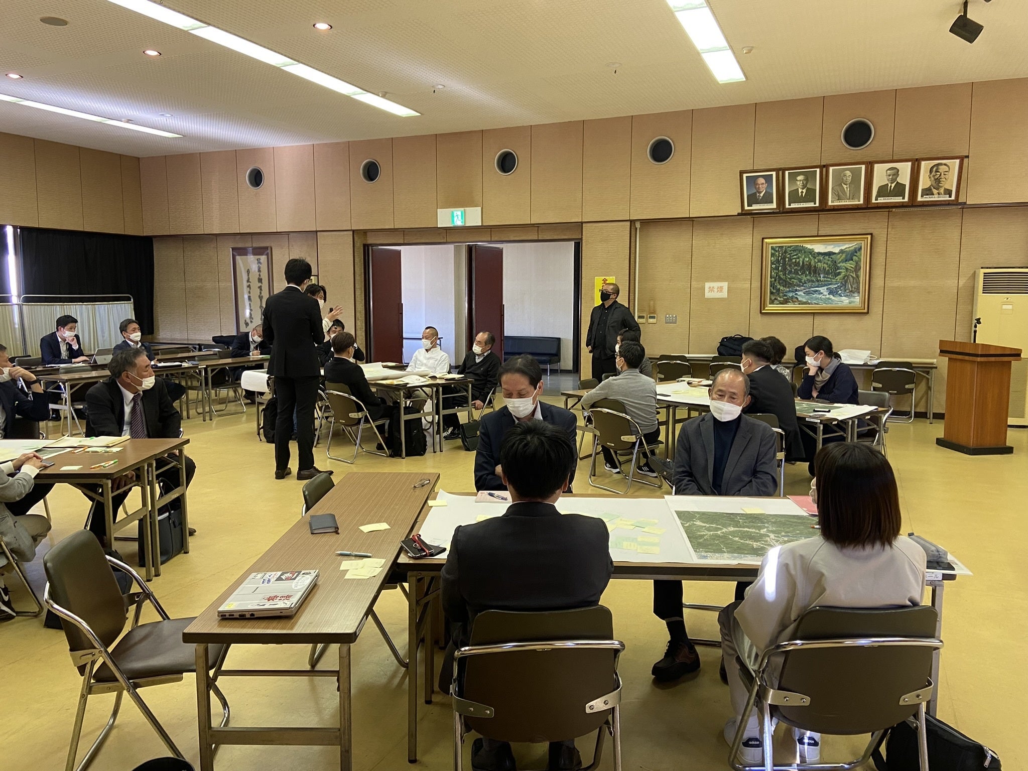 2022年10月から12月にかけて、月1回のペースで合計3回のワークショップを開催しました。60年ほど営業を続けている宿泊施設の会長さんや、長年この地域の活性化に尽力するNPO法人の理事長さんなど、鈍川温泉および玉川地区をよく知る方々から貴重なお話をお聴きし、これまでの鈍川温泉が取り組んだ事例を参加者に共有。グループワークで5年後の鈍川・玉川地区について意見交換をくり返しました。その時の様子は、2023年1月に放送された日本テレビ系列の報道番組や今治市政広報番組にも取り上げられています。
