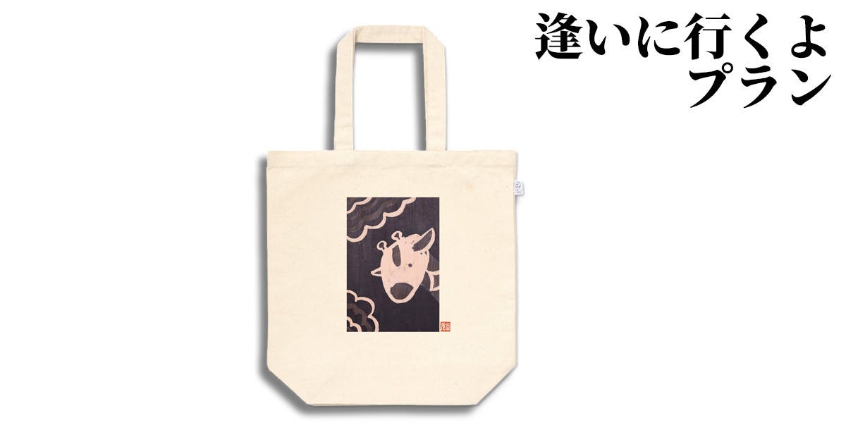 どちらも「●握手&感謝の言葉 」と「●新しいデザインの名刺(1枚) 」がリターンに含まれていますが、オリジナルトートバッグが付いているのは『逢いにいくよプラン 』です。