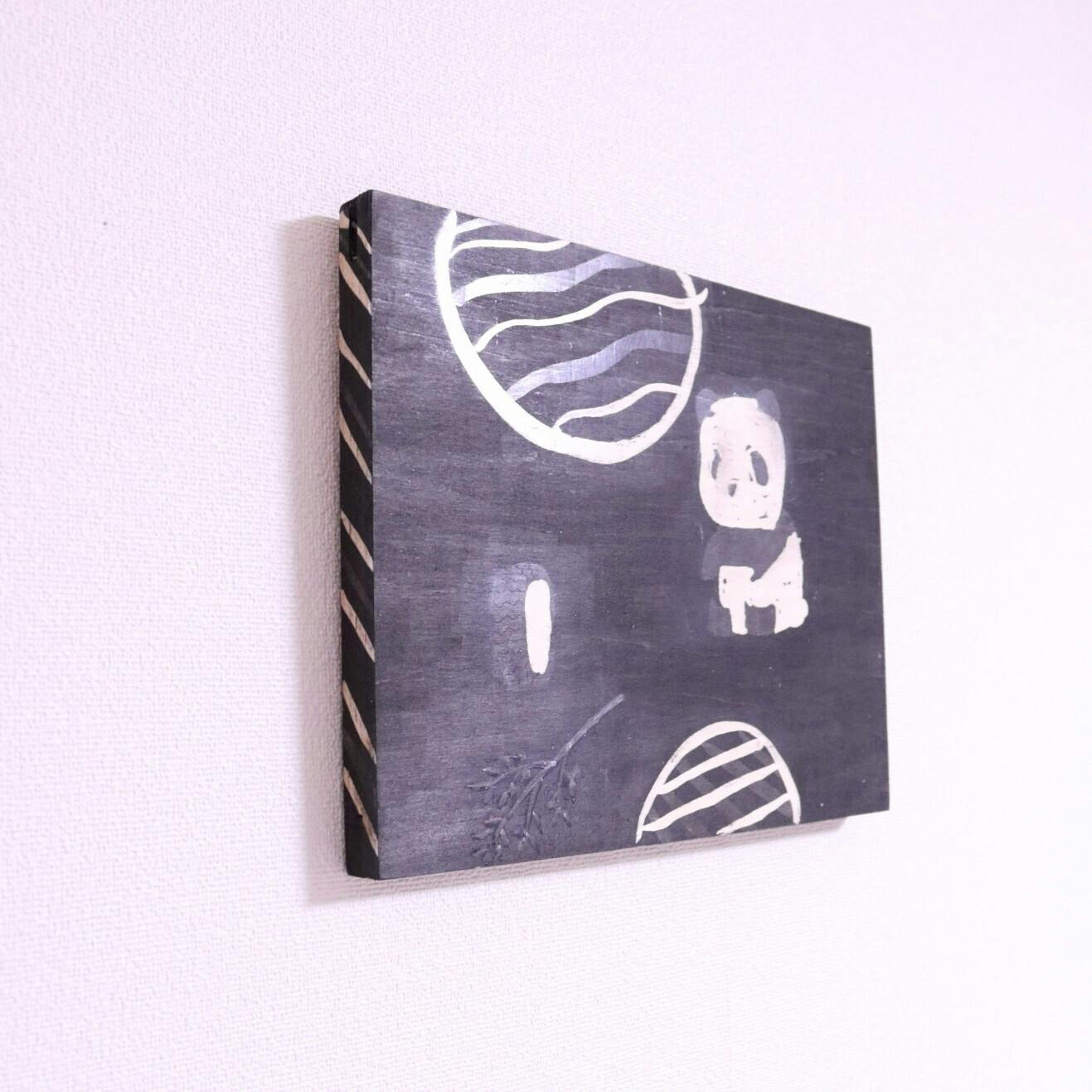 一日中のんびり過ごしてそうな動物園のパンダも、きっとそんな日があるのだろうっと勝手に想像し、笹も食べず、タイヤでも遊ばず、ただ、ぼーっとしている、やる気の無さげなパンダを描いてみた作品です。