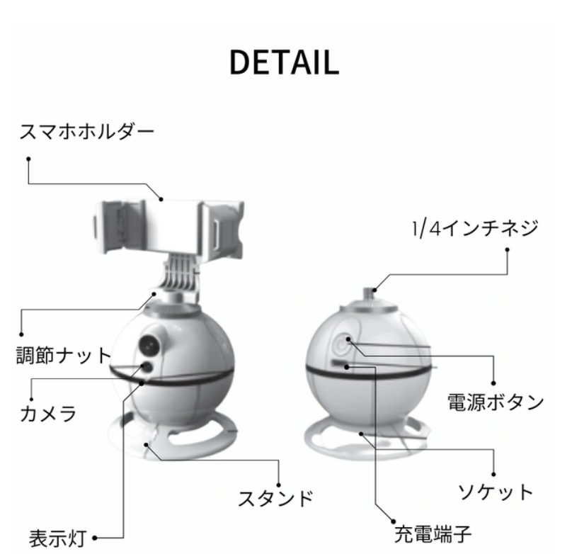 ・カメラが被写体を認識した後、青い光が点灯している状態で動作を開始すると、被写体を360°追跡します。1mから4mほどが最適な距離です。