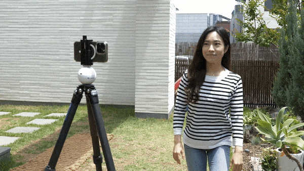 ・カメラが被写体を認識した後、青い光が点灯している状態で動作を開始すると、被写体を360°追跡します。1mから4mほどが最適な距離です。