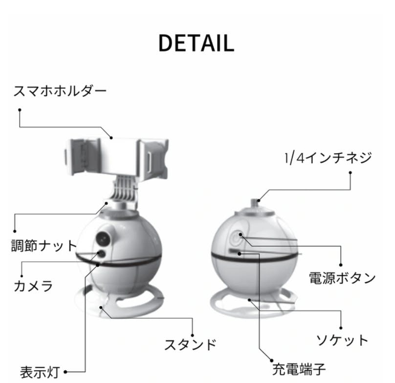 ・カメラが被写体を認識した後、青い光が点灯している状態で動作を開始すると、被写体を360°追跡します。1mから4mほどが最適な距離です。