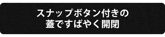 上部の蓋はスナップボタンですばやく開け閉めが可能です。物の取り出しも収納も、すばやくできます。