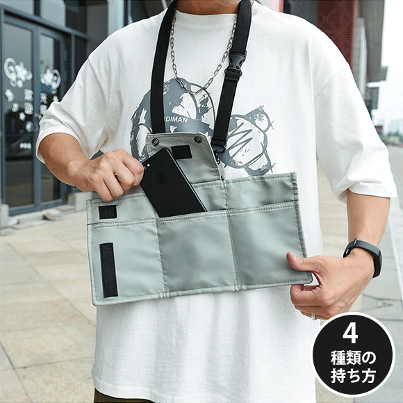 COTENDは三つ折り設計で、肩や腰から下げるのにちょうどよい大きさです。ポケットが8個付いており、必要な物を何でも入れて、すばやく取り出せます。