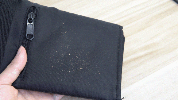 上部の蓋はスナップボタンとマジックテープ付き、全体を折り畳んだ後もマジックテープでしっかり閉じられます。バッグが逆さまになっても中身が落ちにくくなっており、現金やカードなどの貴重品を守ります。