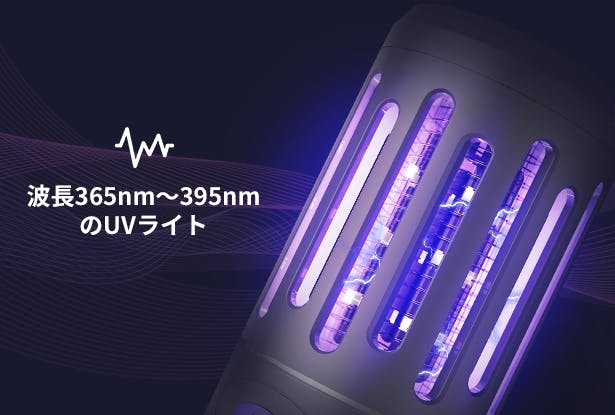 Y8EKは光波の誤差2.5 nm以下のLEDランプを内蔵しており、虫が好む365nm~395nmのUVライトを360°全方位に照射します。