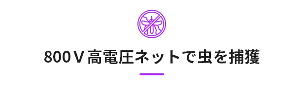高電圧ネットは電圧800Vの電気を虫に通します。この際、光や音を発しませんので、夜眠っている時に使っても睡眠を妨げません。