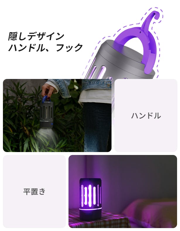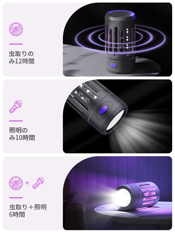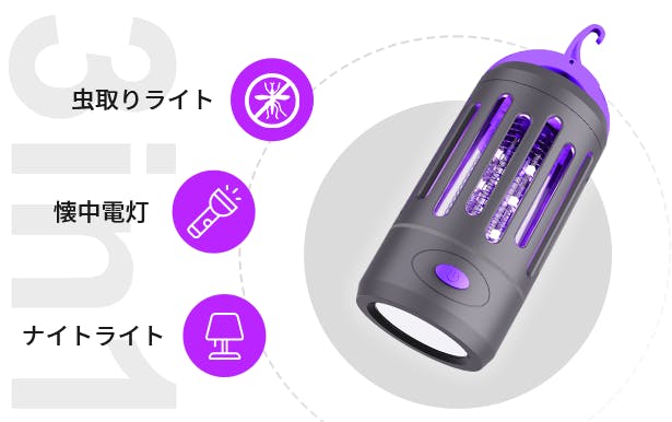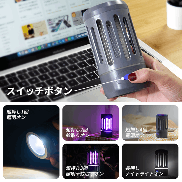 Y8EKは虫取り器としてだけでなく、懐中電灯やナイトライトとしても使用可能です。モードは電源ボタンで簡単に切り換えられます。