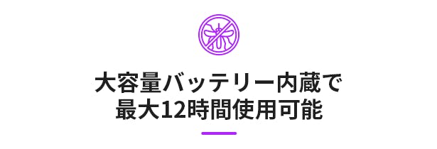 Y8EKは消費電力を低く抑えており、虫取りUVライトと高電圧ネットを合わせた使用電力は3W、懐中電灯の使用電力は1Wです。1200mAhの大容量バッテリー内蔵で、虫取りだけなら12時間、照明だけなら10時間、虫取り+照明なら6時間連続で使用できます。