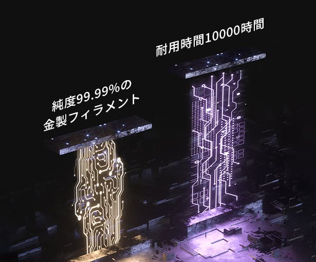 Y8EKのLEDライトのフィラメントは、一般的な合金ではなく、純度99.99%の金を使用しています。さらに台湾製のチップを採用して、耐用時間10000時間を実現しました。例えば、毎晩8時間使用したとすると、3年以上お使いいただくことが可能です。