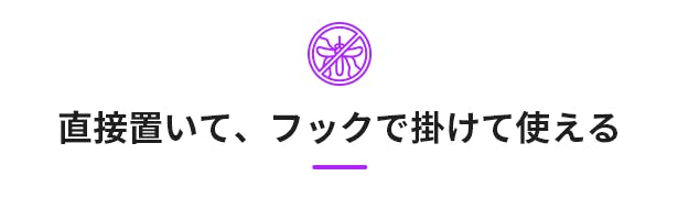 上部に収納可能なハンドルが付いており、持ち運びしやすくなっています。また、ハンドルにあるフックを木の枝やテントのフレームに掛けてお使いいただくことも可能です。