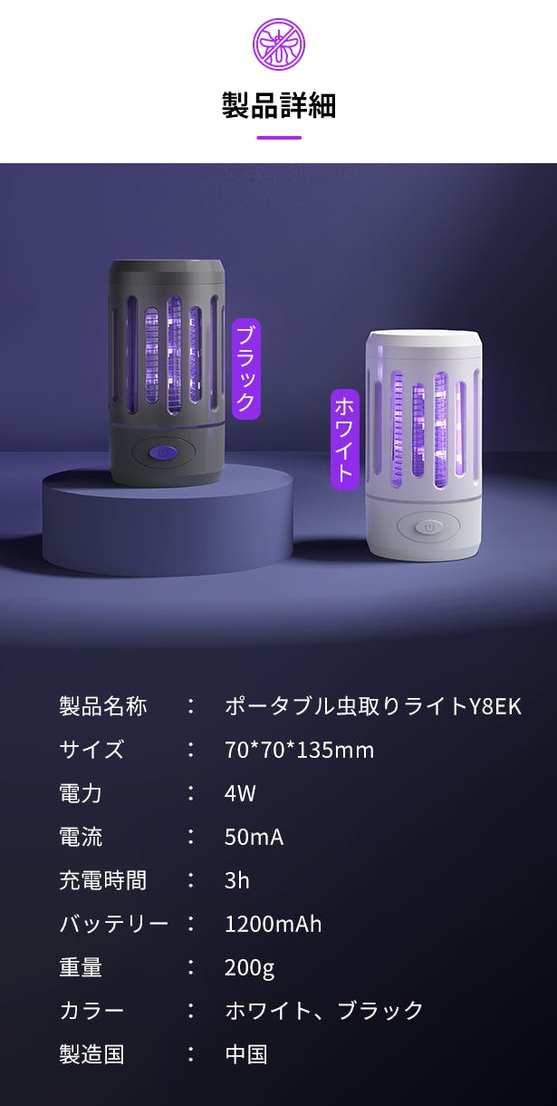 そこで、超軽量&コンパクトでアウトドアでも使いやすいポータブル虫取りライト「Y8EK」をご紹介します!