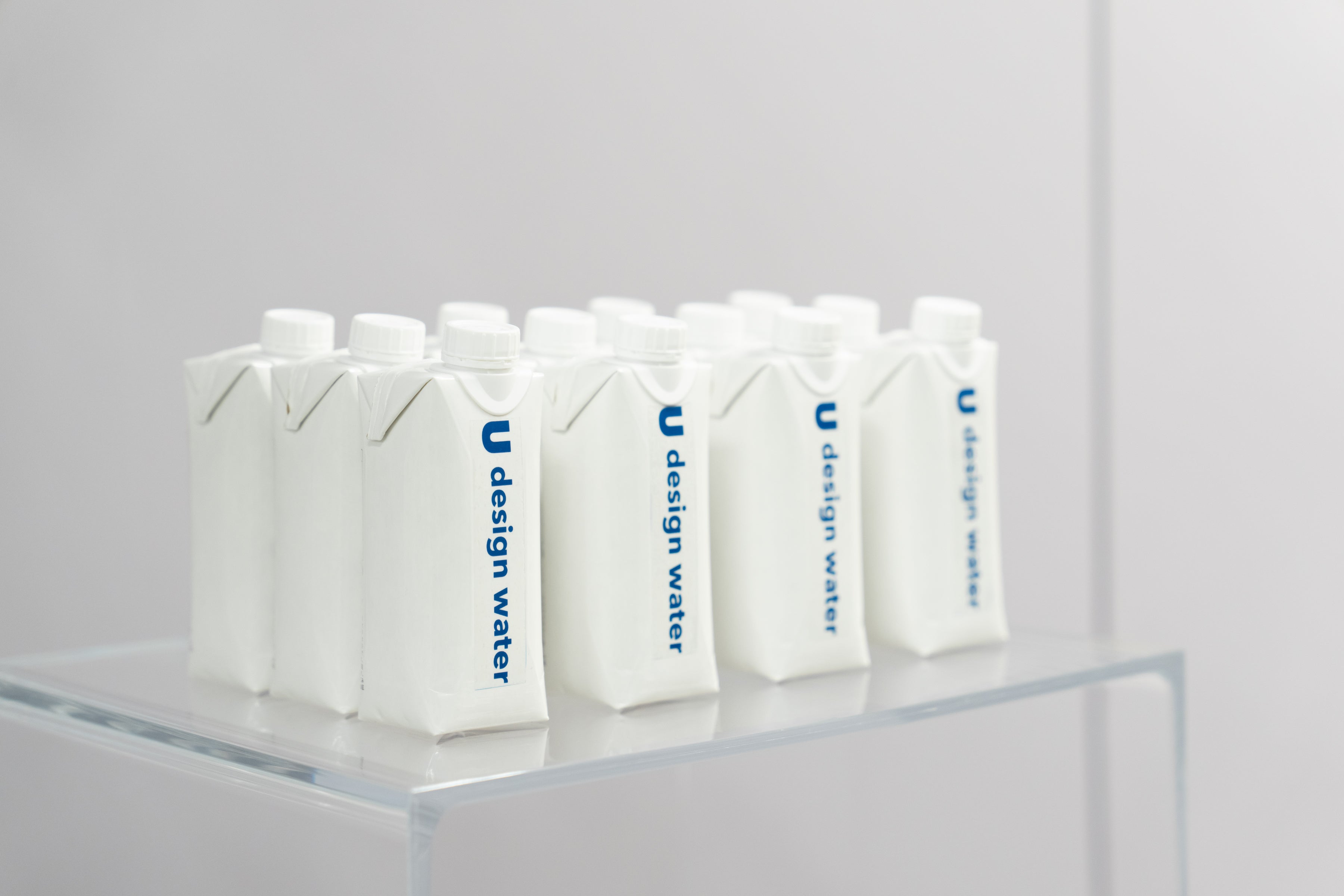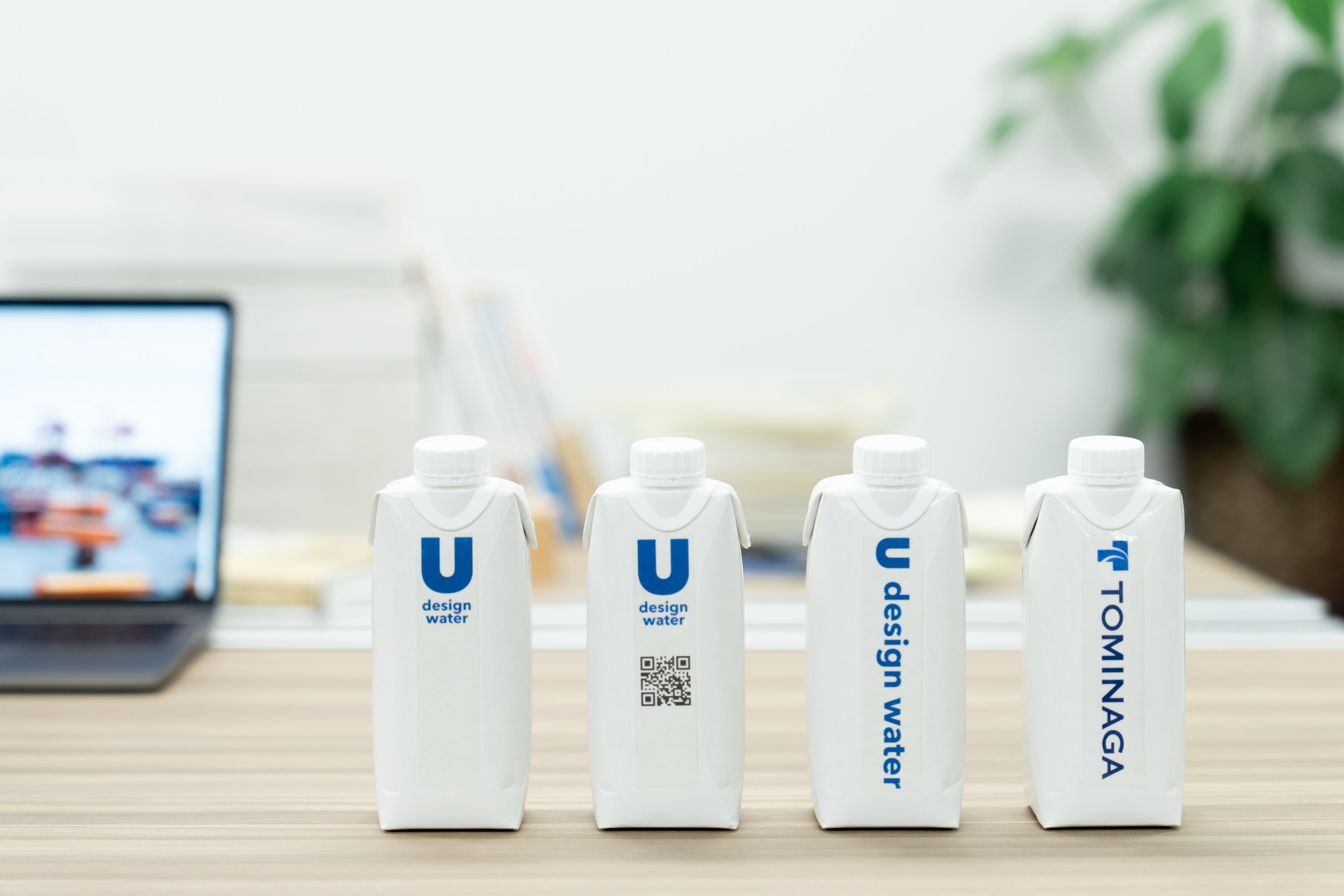 ペットボトルと比較し、環境負荷が小さいとされている紙パックですが、自社オリジナルの製品を製造しようとすると、年間20万本以上使用しなければいけない数量的制約がありました。「U design water」はあえて製品正面を無地のデザインにし、年間20万本の負担を富永貿易で担うことにより、そこにお客様ご自身でデザインしたオリジナルのラベルを貼付してお届けすることで、最少120本から紙ボトルのオリジナル製品が可能になった今までにないサービスです。