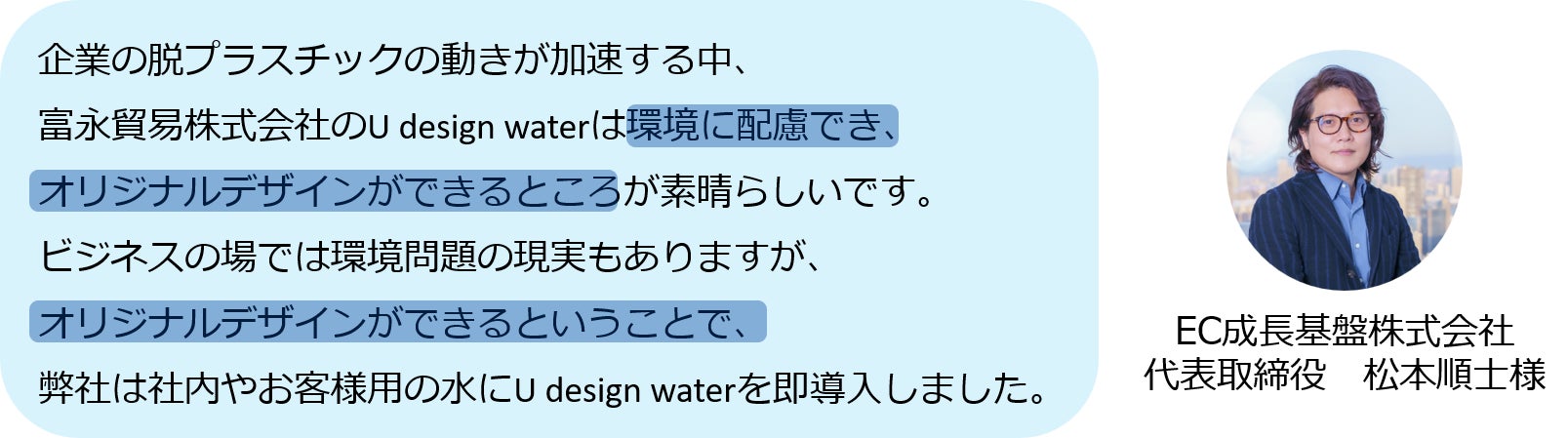 「U design water」に関わっていただいている企業のご担当者様から応援のコメントをいただきました。