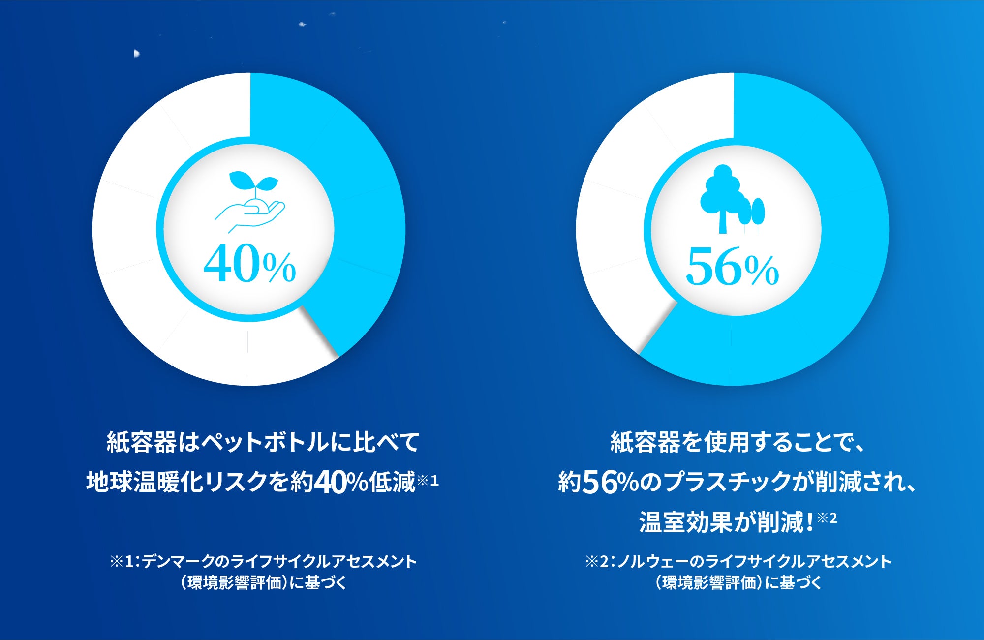- 1)ペットボトルと比較して環境負荷の少ない紙パックを採用