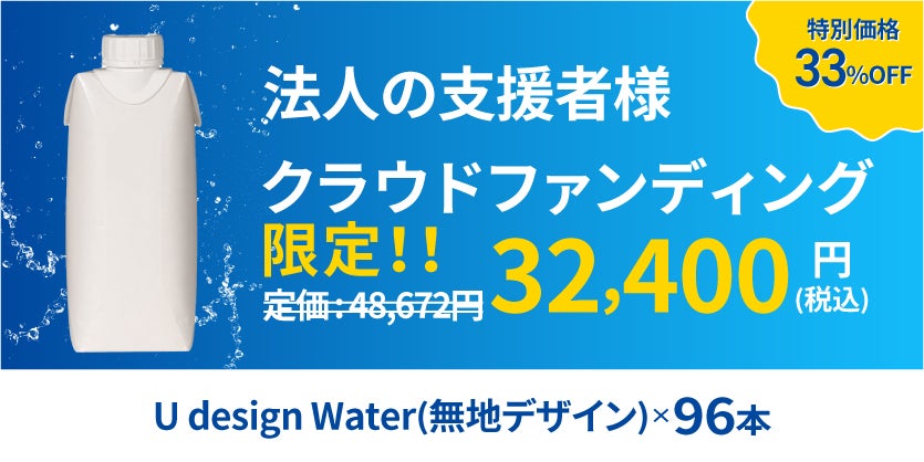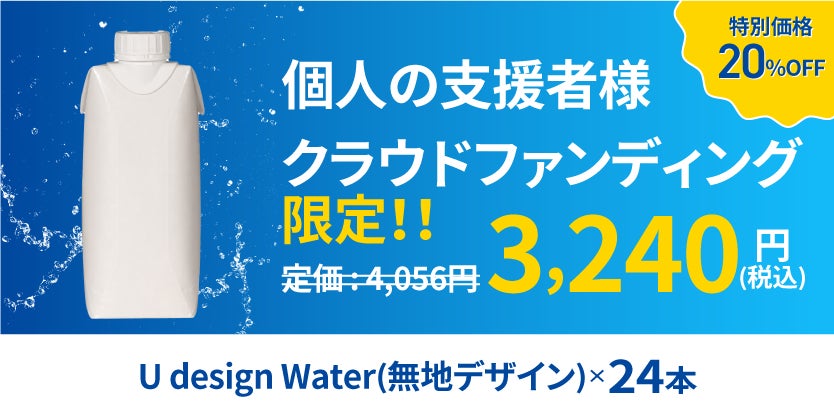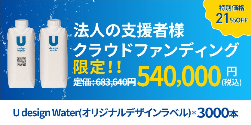 U design water(オリジナルデザイン)(3,000本)を特別価格(21%OFF)でお届けします。