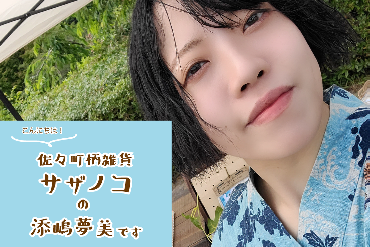 佐々町柄雑貨サザノコ の 添嶋 夢美(ソエジマ ユメミ)です。