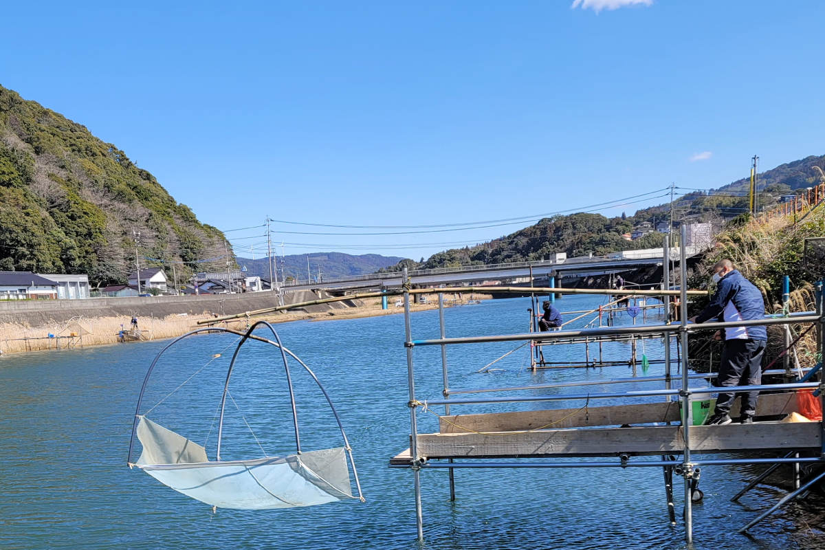 たとえば、佐々町の春の風物詩「シロウオ漁」と「川津桜」を