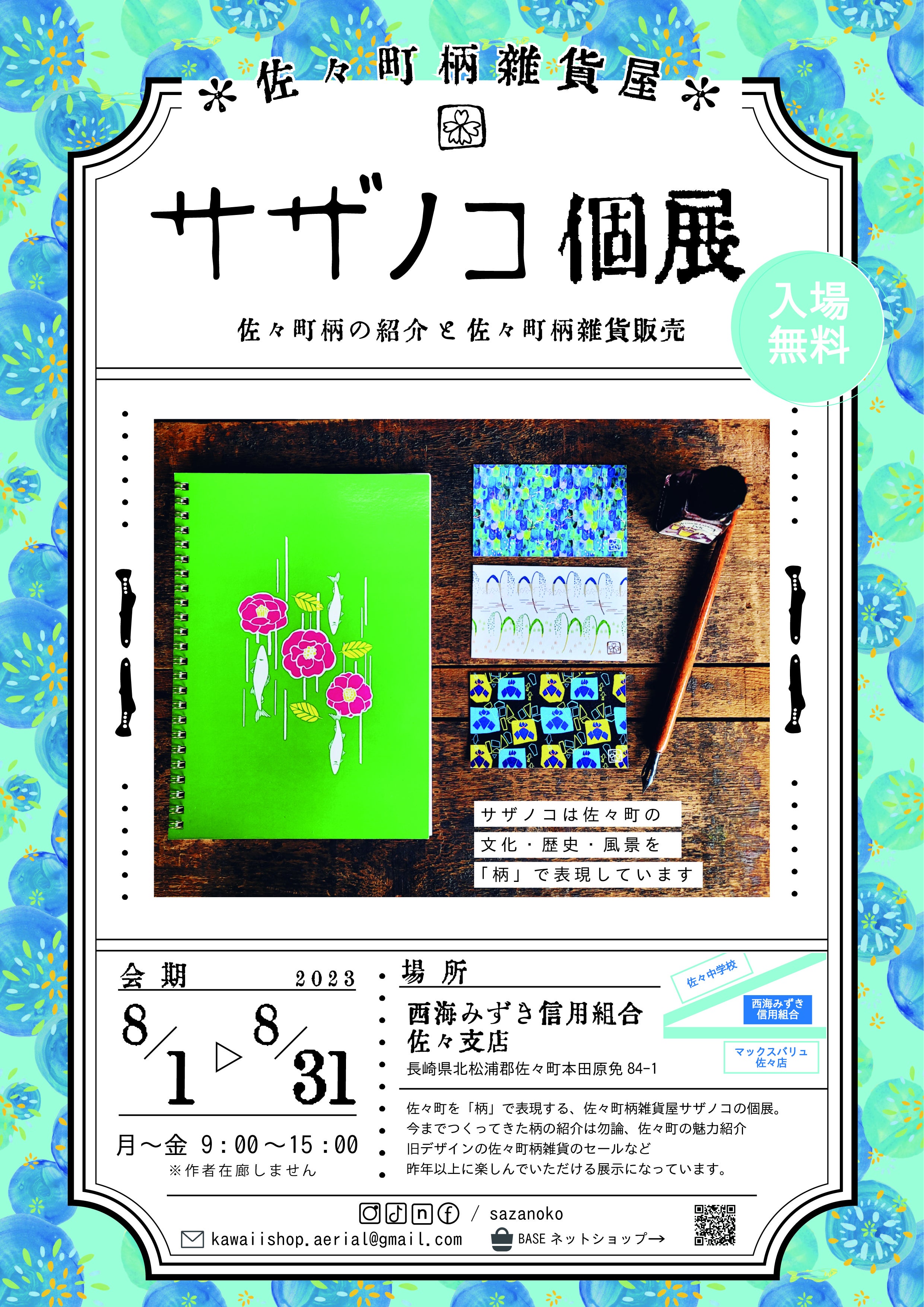 2023年8月1日~31日 佐々町柄雑貨屋サザノコ個展開催