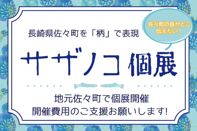 2023/08/07 10:51こんにちは!報告が遅くなりすみません!「今年も地元佐々町で佐々町柄雑貨の個展をしたい!」クラファン挑戦終了しました。御支援者様9名総御支援額23500円でした。目標金額は達成できませんでしたが準備期間の焦りや不安でいっぱいの心に御支援者様からの温かいご支援がとても沁みました。本当にありがとうございました!頂いたご支援は宣伝広告用のチラシ、壁面のかざり、新ディスプレイ用品などの支払いに充てさせて頂きます。皆様の御支援が、サザノコ個展を盛り上げてくれています!サザノコ個展は8月1日~31日の平日に西海みずき信用組合佐々支店で開催しています。(お盆休みはないそうです)今年の暑さを吹き飛ばす爽やかで涼しげな展示にしました。かわいく楽しく気軽に佐々町の事を知ることができます。メッセージカードの半額セールや新商品(工夫紙・ピンズ)の販売も行っています。お盆の帰省のおみやげに夏の御挨拶に添えて佐々町柄雑貨ぜひご覧になってみてください。・・・・・・・・・・・・・・・・・・・〇サザノコ個展〇西海みずき信用組合佐々支店〇8月1日~31日の平日(お盆休みはありません)〇9~15時※作者在廊しません※駐車場アリ もっと見る今年の展示は…