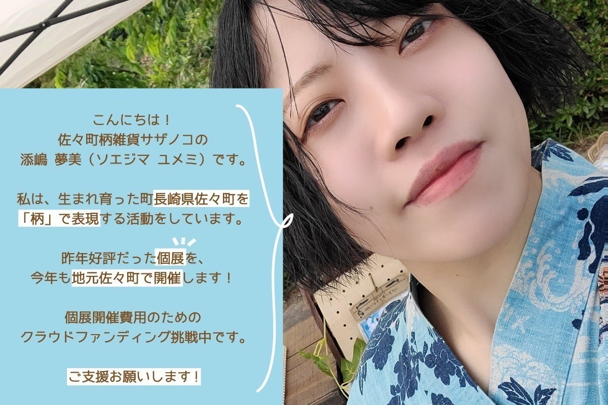 2023/07/17 22:09こんにちは!佐々町柄雑貨サザノコの添嶋夢美です。「今年も地元佐々町で佐々町柄雑貨の個展をしたい!」というクラウドファンディングのプロジェクトを立ち上げて数日が立ちました。忙しさを言い訳に、中々宣伝ができていない数日でしたが既に3名の温かいご支援をいただきました。本当に、心から感謝しています。今年は2回目の個展開催・クラウドファンディングは3回目の挑戦ということで昨年よりは慣れて少し楽に開催できるかな?と春先までは思っていたのですが有難いことにデザインのお仕事を複数頂いたり日々の育児に追われている間にあっという間に時間が過ぎてしまい…残り時間の短さに、青ざめています。本当に情けない限りです(;´・ω・)このクラウドファンディング自体も、本当は7月1日から31日までする予定だったのですが実際開始できたのは7月12日でした。そんな状態にもかかわらずご支援・応援・シェアをしてくださった皆様には本当に感謝してもしきれないくらいです。ありがとうございます。がんばります!個展開催・クラファン終了まで残り14日という短い時間しかありませんが私の目を通して見た佐々町の魅力を、たっぷりとお伝えできる個展にしますのでご支援お願いいたします!個展のチラシも手元に届いたので「うちで掲示していいよ!」「お店にチラシ置いていいよ!」という方がいらっしゃしましたら、ご連絡いただけたら嬉しいです(><)!よろしくお願いいたします。 もっと見る