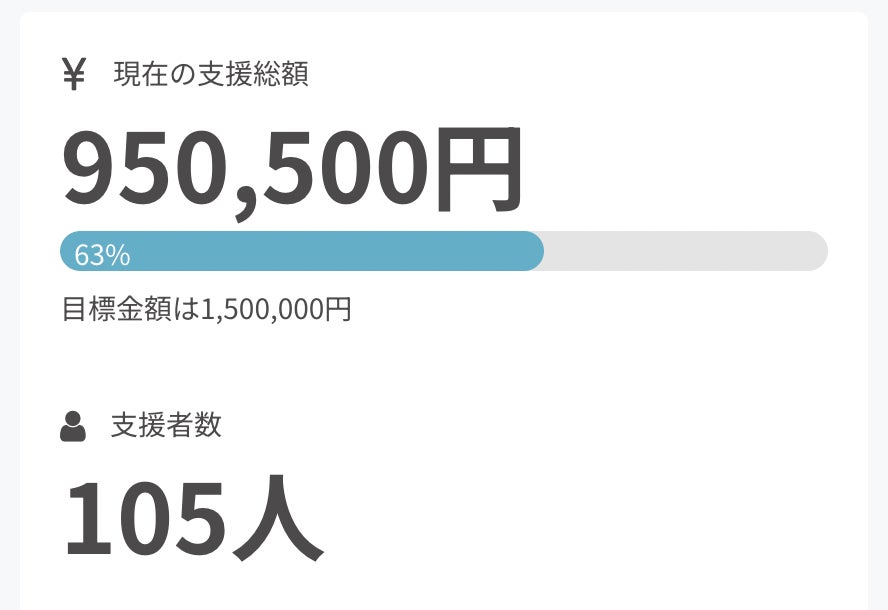 特に応援いただいた105名の方たちとつながれたことが一番嬉しいことです。ありがとうございます。後ほどリターンなどの内容により個別にご連絡させていただくかとは思いますが、まずは御礼申し上げます。