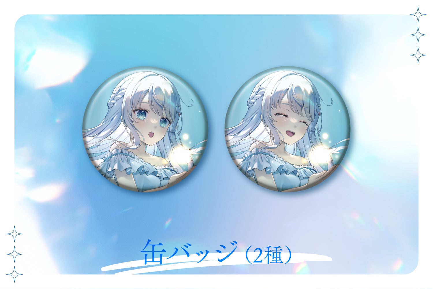 1stシングル『波音のプレリュード』のキービジュアルを使用したアクリルキーホルダーと缶バッジです。