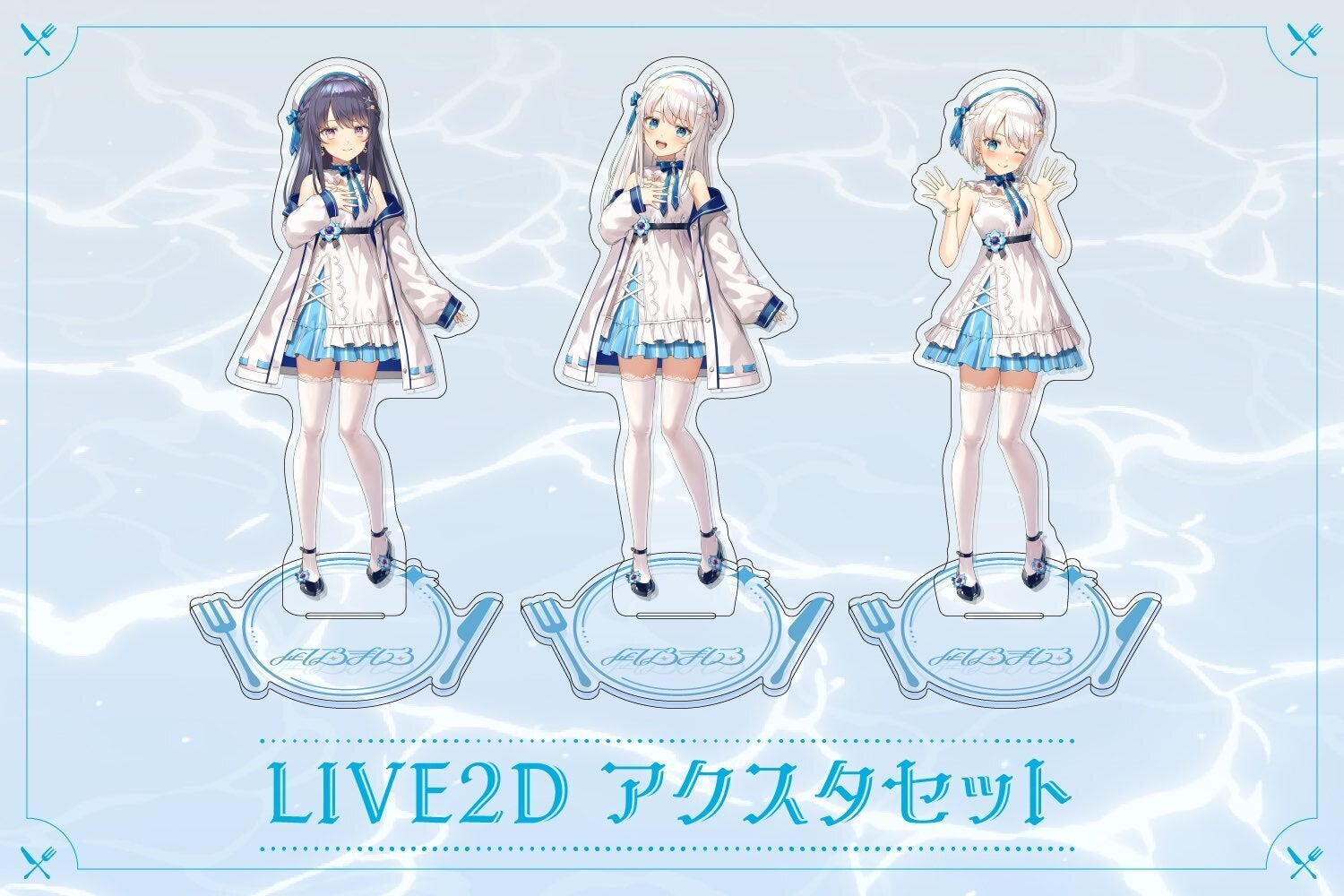 通常販売は初となる、LIVE2Dのアクリルスタンド3点セットです。一番人気の歌うポーズや、レアなまくろんやショートのアクスタを揃えました。