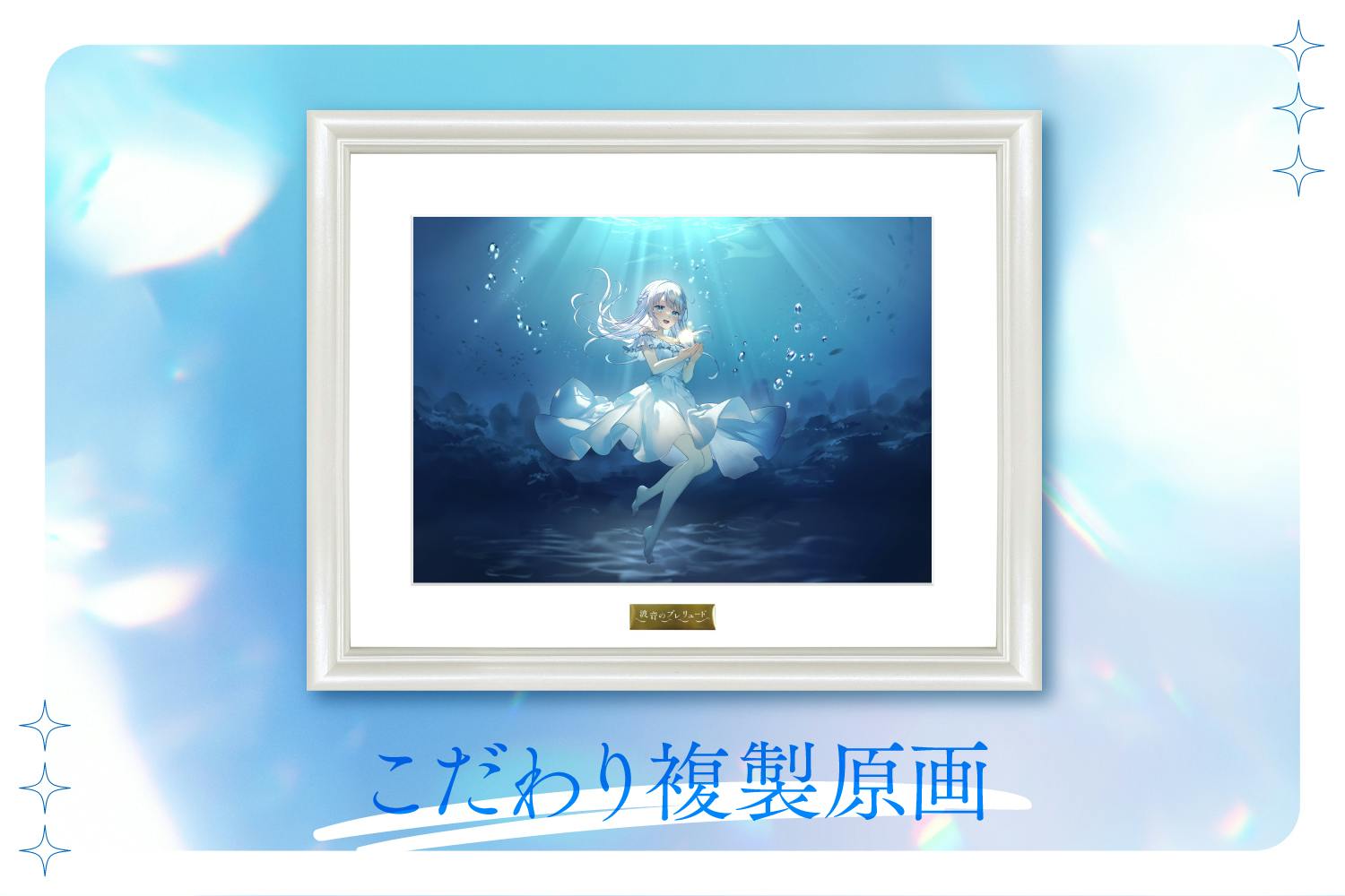 1stシングル『波音のプレリュード』のキービジュアルを使用した複製原画は、国産額縁やマット紙など、全て凪乃ましろがパーツを選んで作成したこだわりの作品です。(キービジュアル 菊月様)