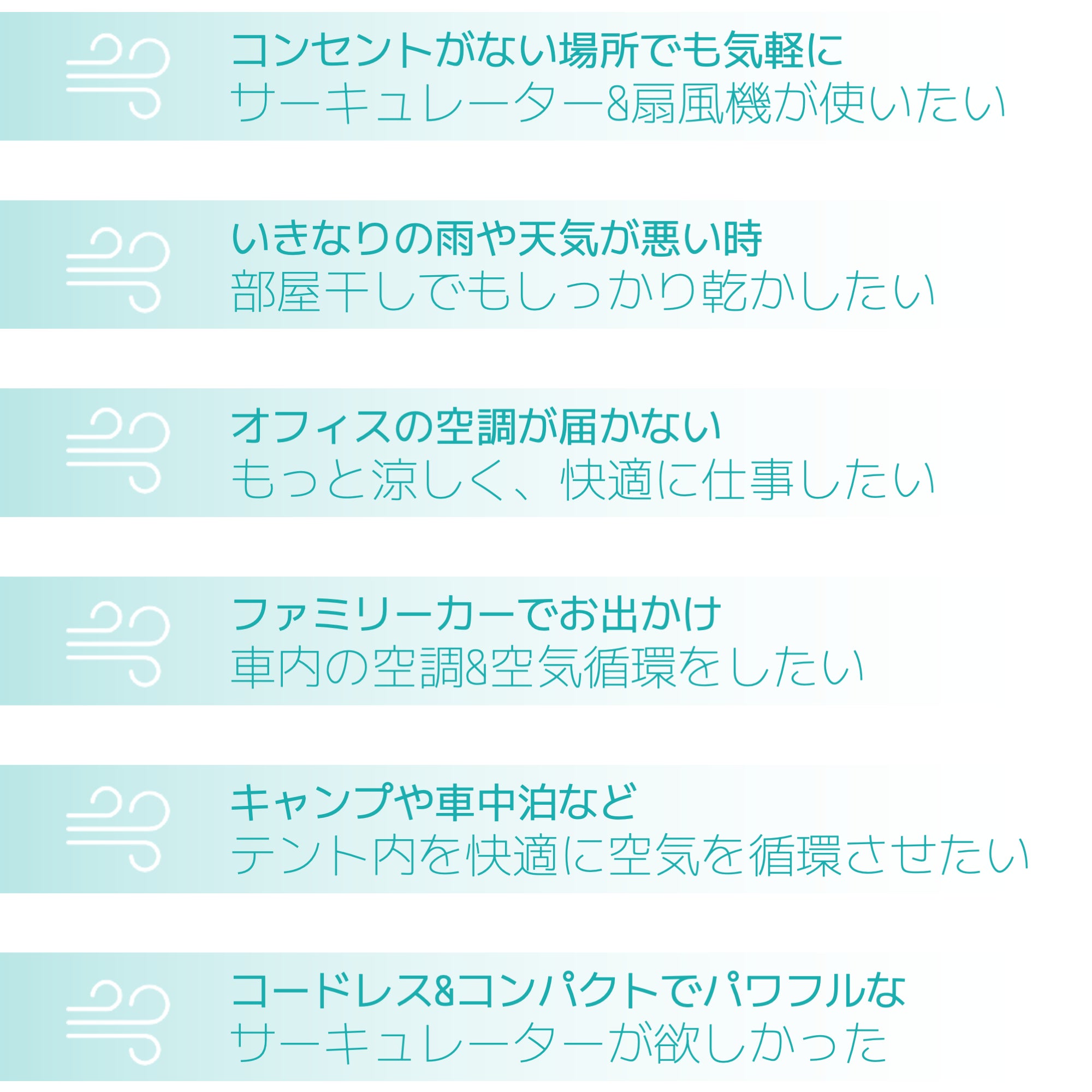 「i-CIRCULサーキュレーター」は、コードレスながらもパワフルな風量が実現でき、最大24時間使用が可能なとても魅力的な商品です。夏はもちろん冬でも空調暖房の多い日本のライフスタイルですので、空気循環に役立ち、1年中ご活用していただける日常の便利アイテムになることに間違いありません。