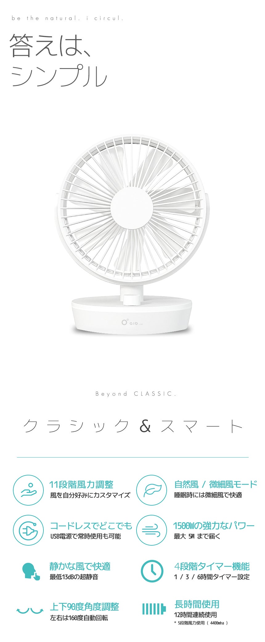 【商品名】aioLAB i-CIRCUL コードレスサーキュレーター