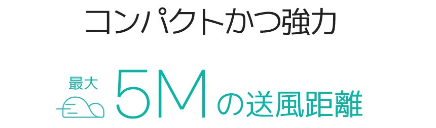 最大5M先まで風を送ることができ、コードレスで簡単、楽に部屋中の空気を快適に回すことができます。夏だけではなく、1年中サーキュレーターとしてもご活躍できます。