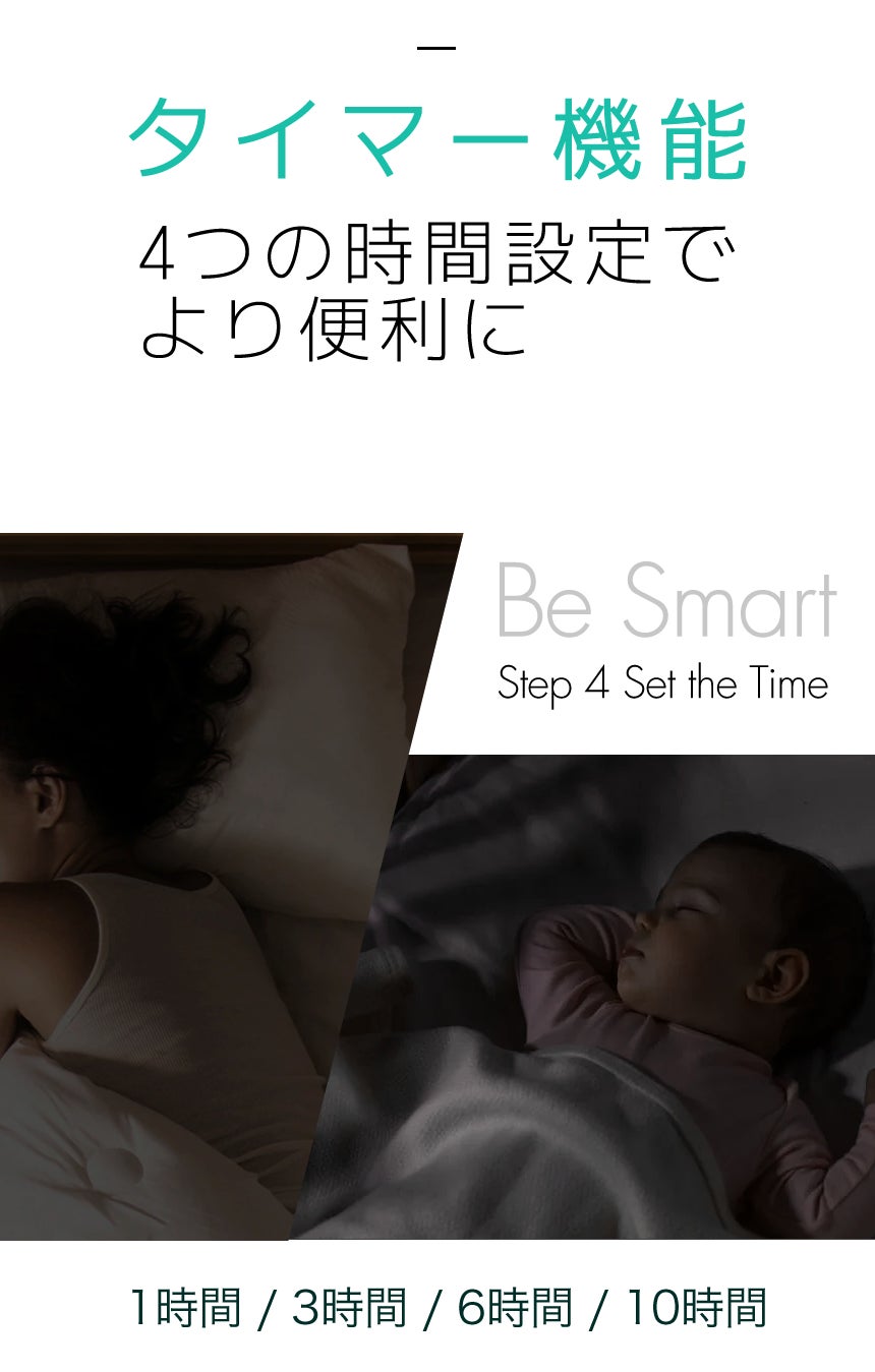 タイマーは、4つの自動OFF設定ができ、睡眠やお出かけなどでご活用できます。