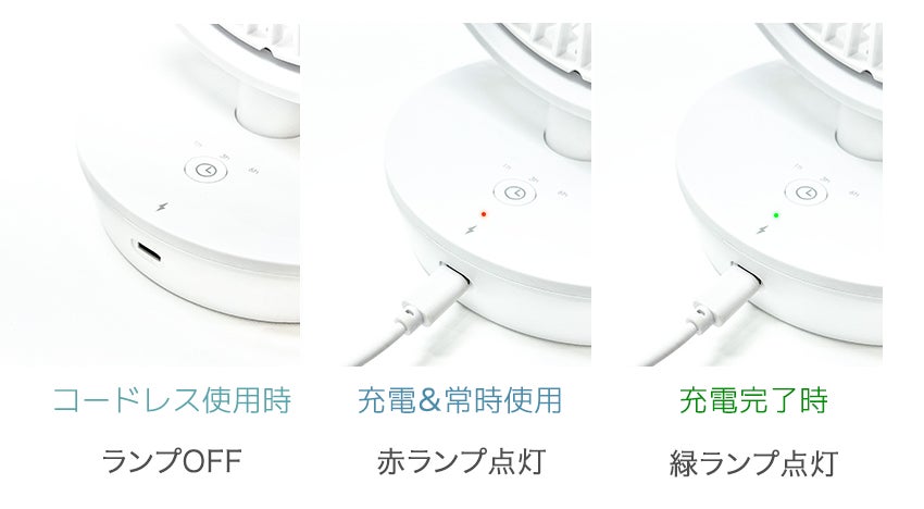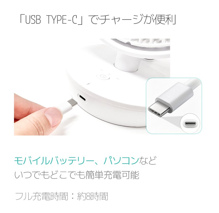 コードレス電化製品は、いつでもどこでもチャージがとても大事です。最近一般化してTYPE-Cに対応することでオフィスのパソコンや外出先のモバイルバッテリー、車内USBポートなど、いつでもどこでも簡単チャージが可能です。