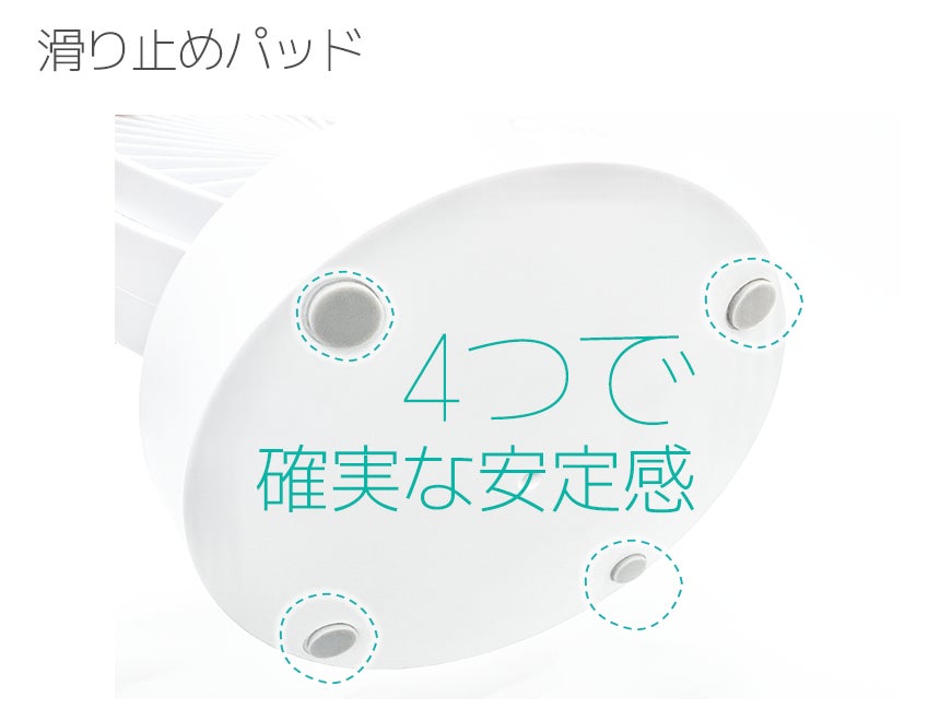 仮に滑りやすい床やガラスの上に置いても、4カ所についている滑り止めがしっかりとグリップ力を発揮し、安定的にバランスを取ります。