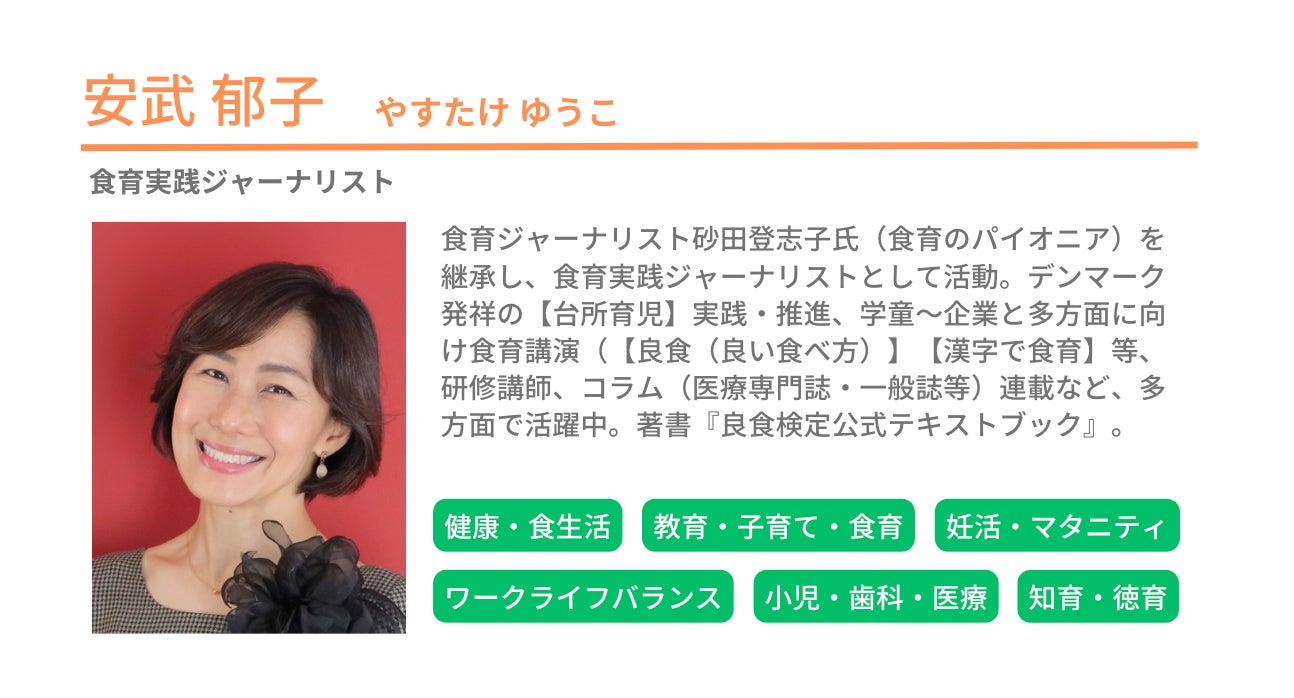 はじめまして!良食検定を主宰している安武郁子です。食育実践ジャーナリストとして講演活動、セミナー、執筆などを行なっています。1991年、食育のパイオニアである食育ジャーナリスト砂田登志子氏による食育の日欧米比較論の話が食育との出会いでした。幼児期から食育・歯の健康教育などの生活優先教育が寝たきり老人ゼロの国を実現させた北欧に対して寝たきり大国世界一の日本。日本においても生活優先教育の必要性を痛感しました。砂田登志子氏の50年に渡る食育活動である”良食”を一人でも多くの皆様に伝え、”良食活動”に賛同して頂ける方々に応援して頂きたく、この度CAMPFIREに参加しました。