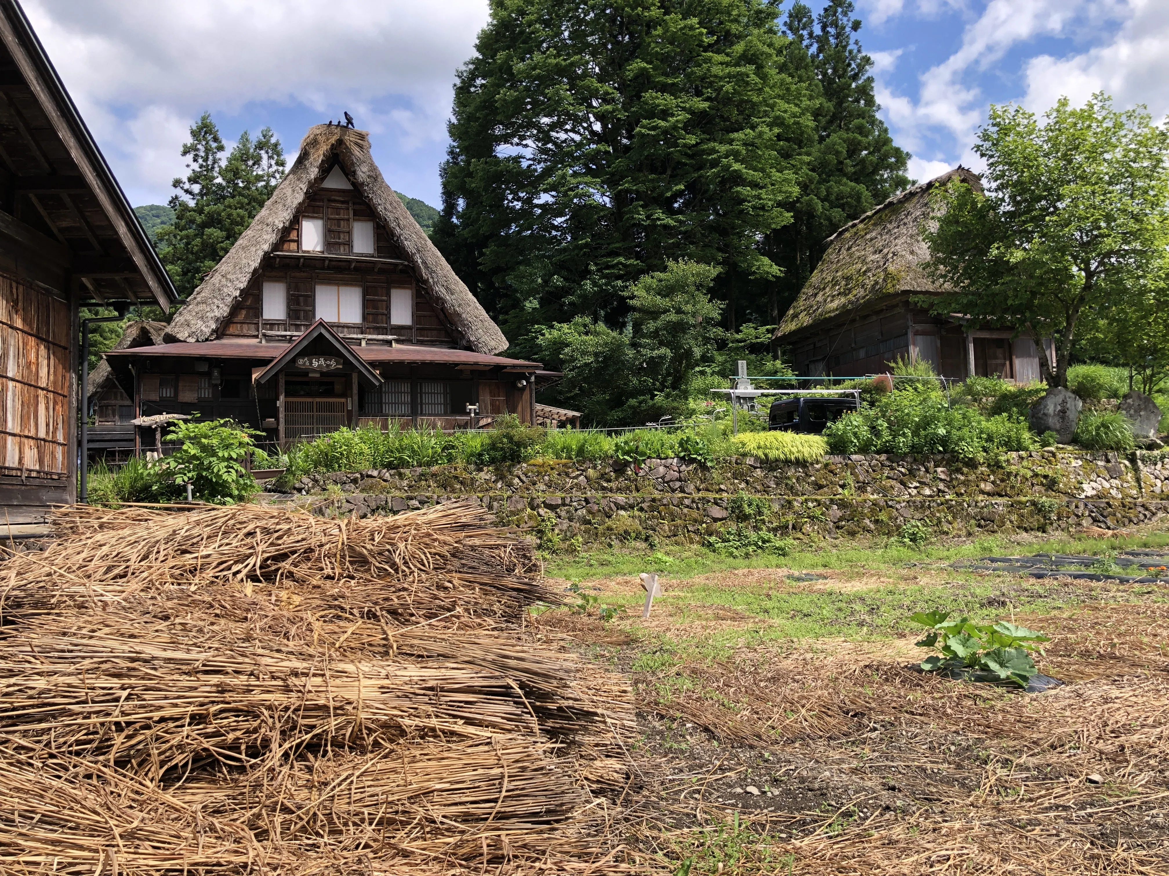 畑に敷くため積まれた古茅/草原の里「相倉」(富山県南栃市)