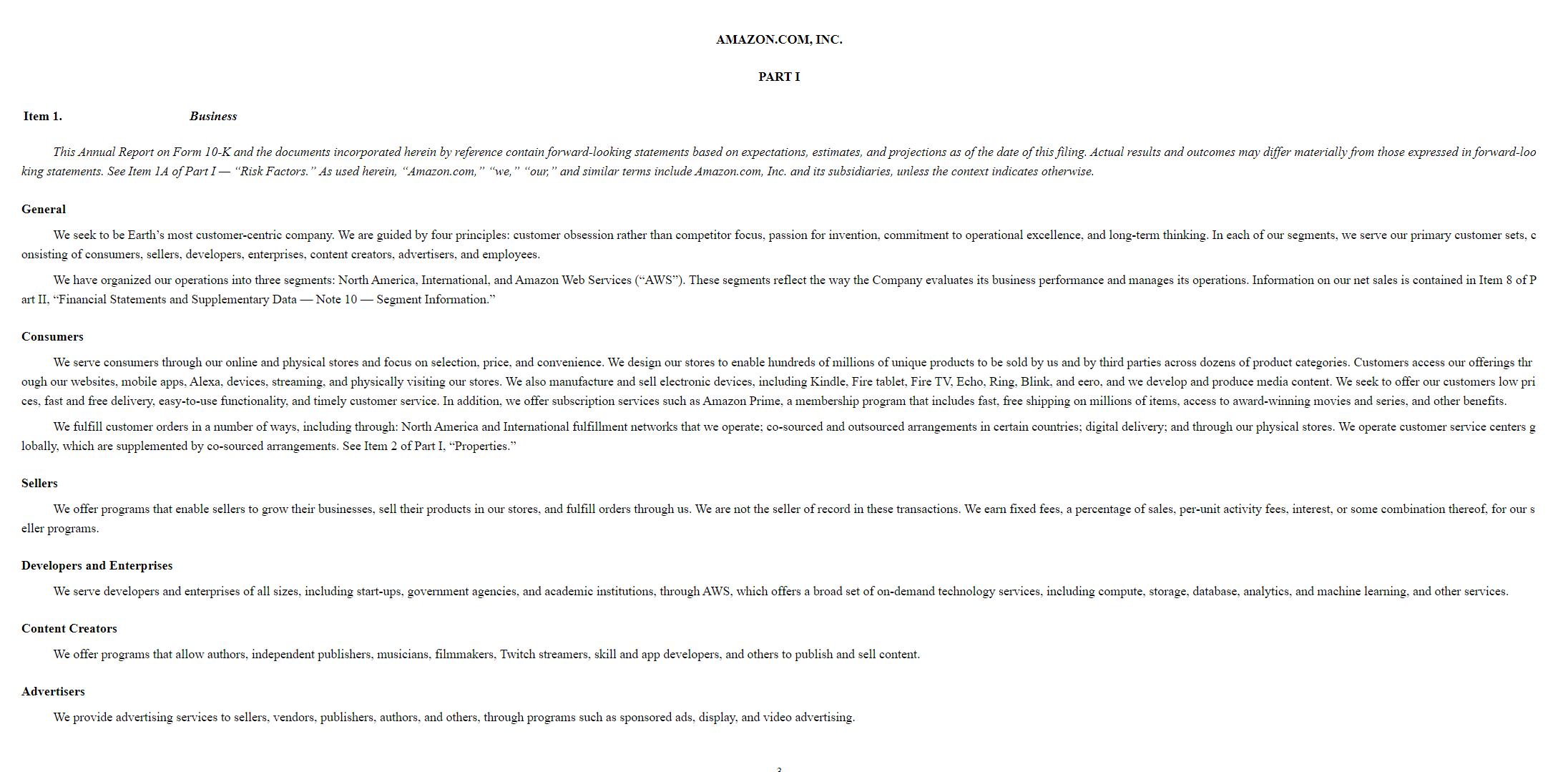 まずはこちらが原文です。Amazonの直近の10-K(有報みたいなもの)です。