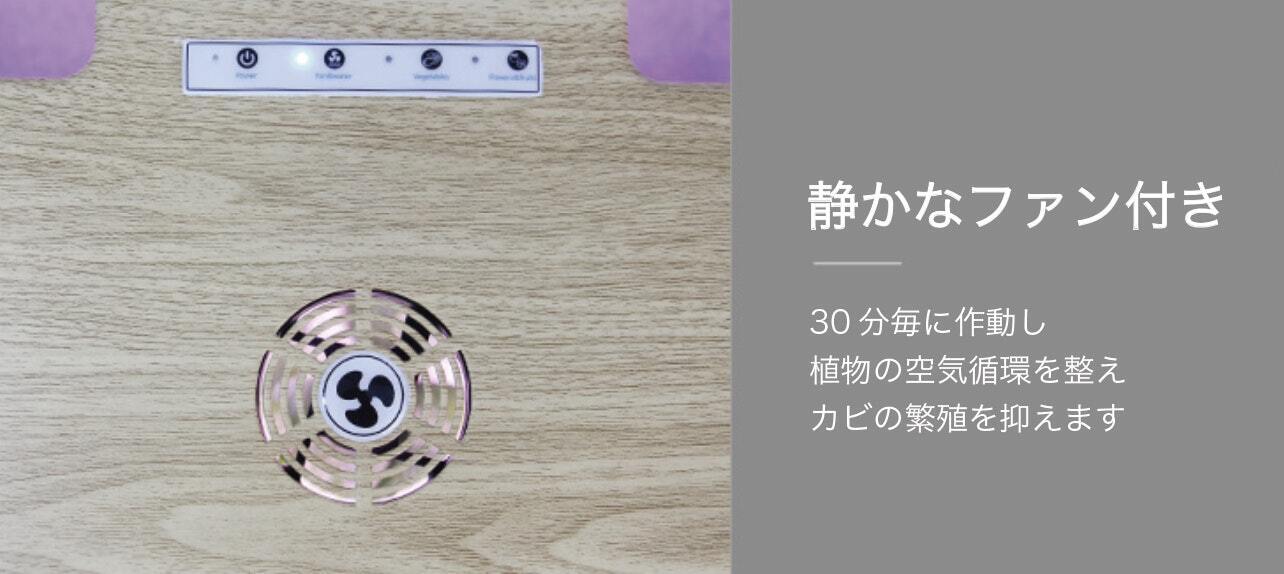 ファンとウォーターポンプ内蔵で自然の風を模倣した空気循環と
