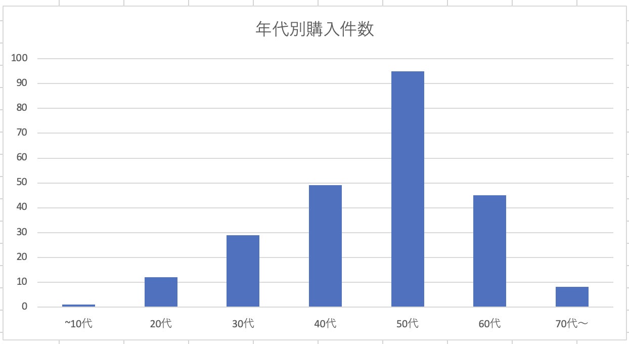 リピーターが居るので、同じ人が何度も買っているとその年代の数が増える。