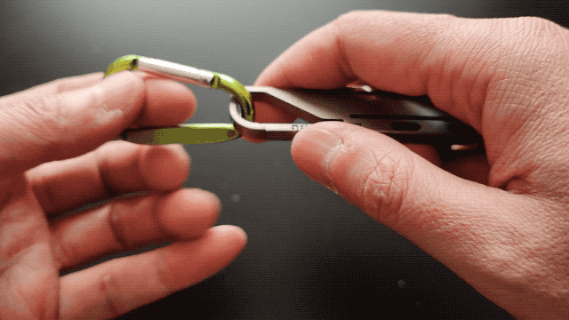 カラビナは、ズボンやバッグの持ち手などにつけることができ、