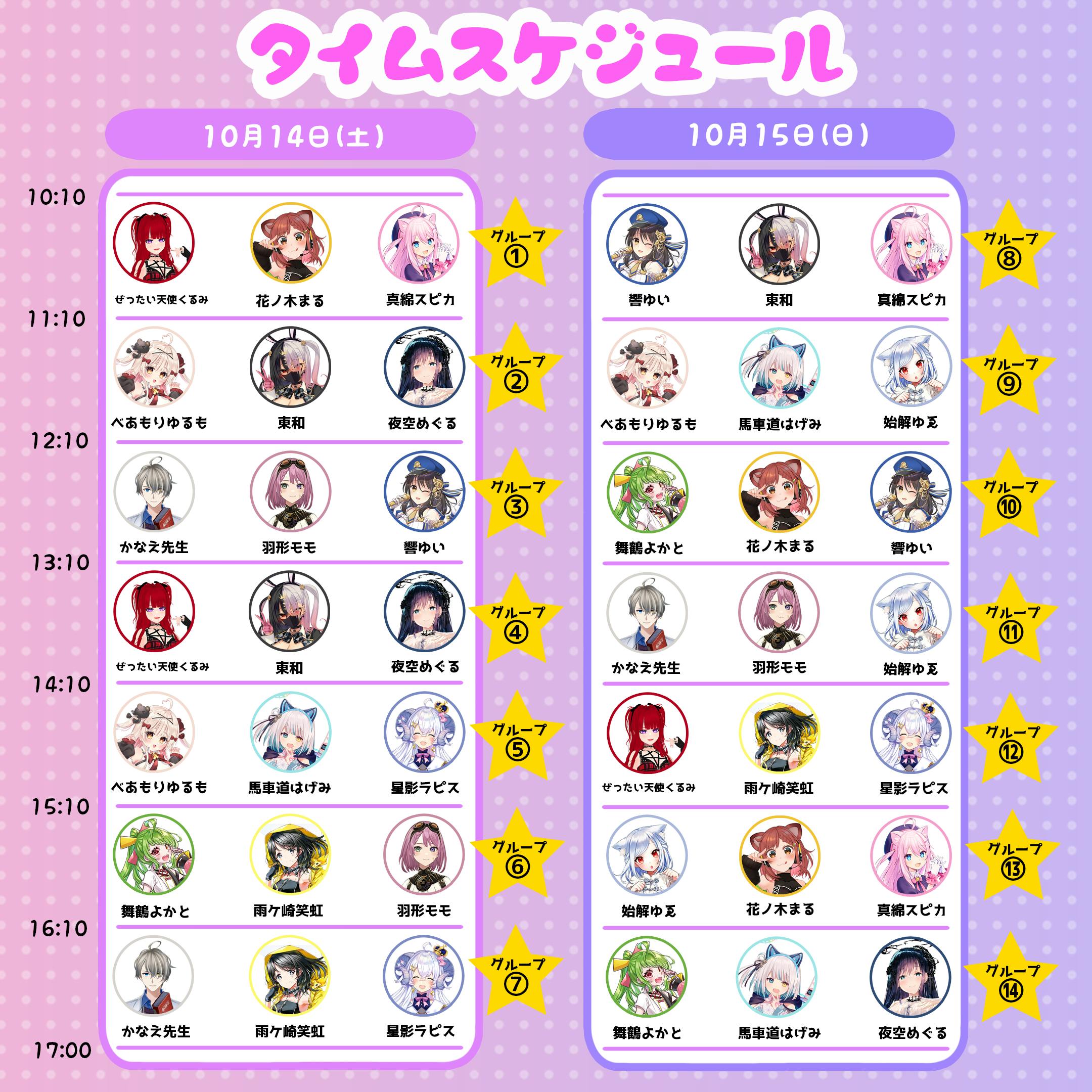 ※タイムスケジュール内での先着順のため、混雑によってはご希望のVTuberさんと話せない可能性もございます。