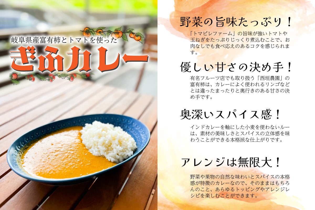 今回、岐阜県の魅力をもっと発信していきたいというカフェと農家が手を組んで、岐阜の特産品である富有柿と岐阜県産のトマトをふんだんに使った岐阜を楽しむレトルト「ぎふカレー」プロジェクトを立ち上げました!