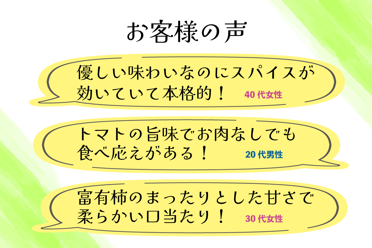 野菜の旨みと甘みのみでお肉入りのカレーに負けない食べ応えを目指したこだわりの逸品に仕上がっています。