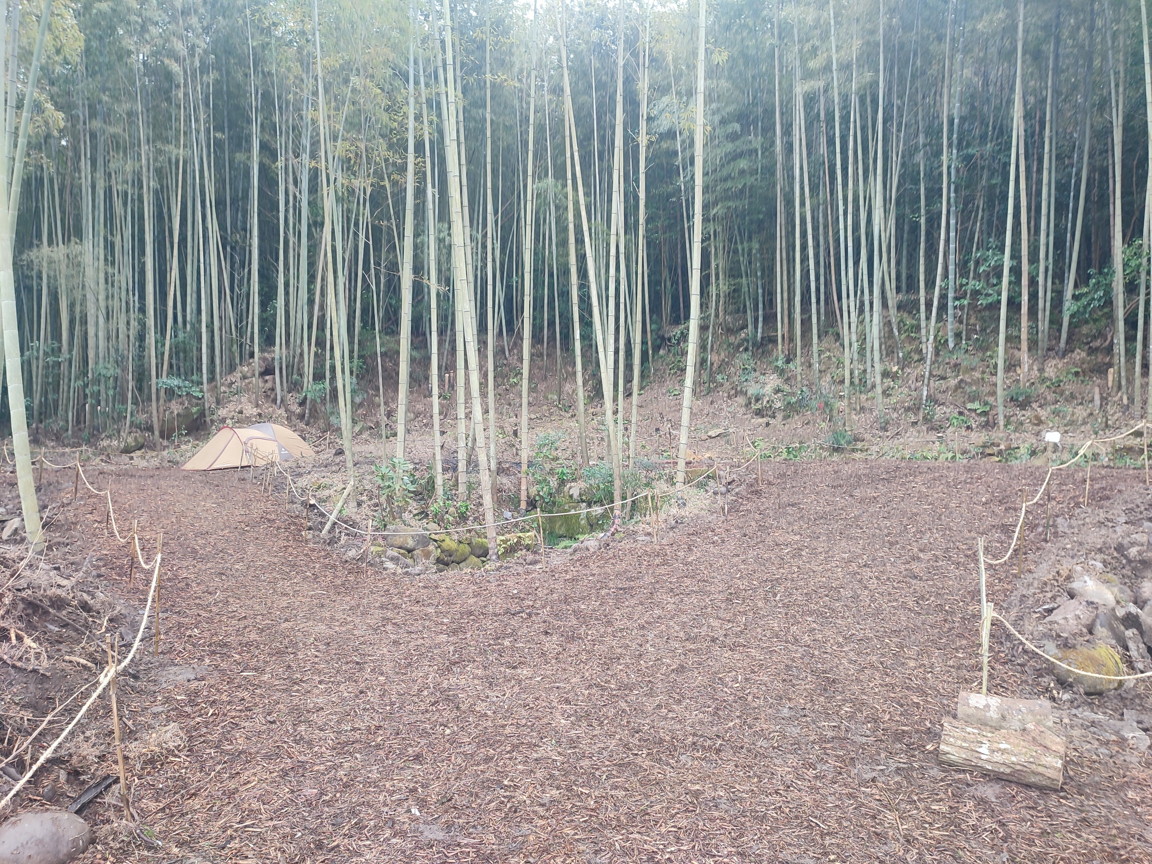ウッドチップを敷き竹林の中を歩いてるような